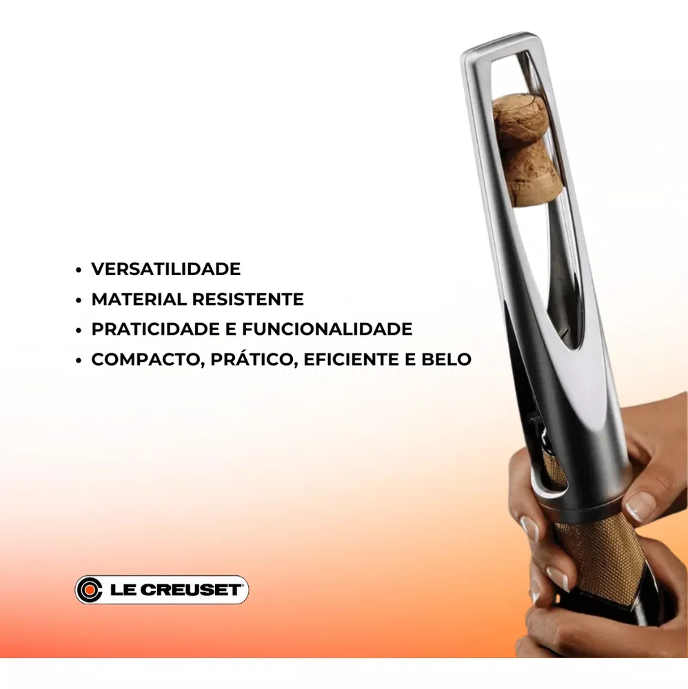 O Abridor The Champ da Le Creuset é a união perfeita entre engenharia de precisão e elegância francesa. Desenvolvido especificamente para garrafas pressurizadas, como champagnes e espumantes, ele transforma o ato de abrir a garrafa em um ritual seguro e sofisticado.