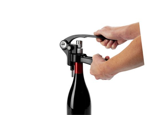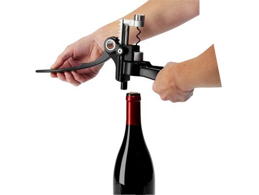 Mecanismo de Alavanca Superior: Remove a rolha em segundos com um movimento de "subida e descida", sem exigir força física.