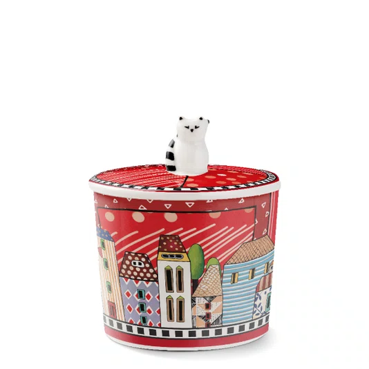 O Açucareiro Paese Mio da Egan Italy é um elemento indispensável para quem deseja compor uma mesa de café ou chá com autenticidade e vivacidade. Na cor vermelha vibrante, esta peça destaca-se pelas ilustrações que remetem à arquitetura das pequenas vilas da Itália, trazendo o conceito de "Paese Mio" (meu país/vila) para o cotidiano. Com capacidade de 250ml, ele equilibra perfeitamente o formato compacto com a funcionalidade, sendo produzido em porcelana de alta qualidade para garantir durabilidade e um acabamento estético superior.