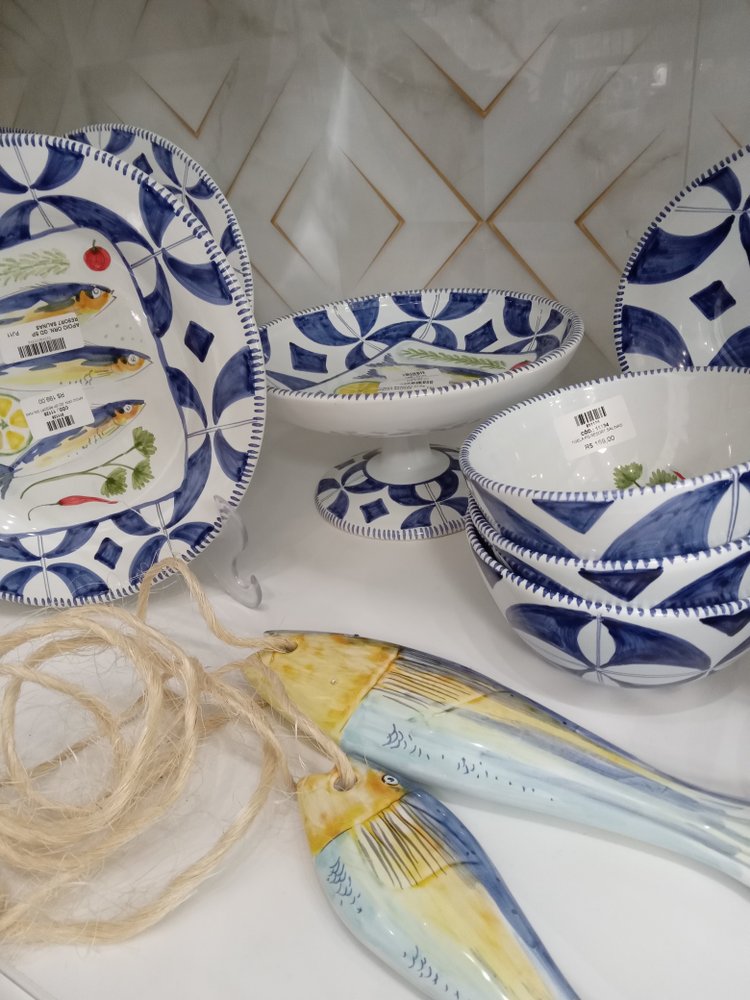O Adorno com Corda Sardinhas da Luiz Salvador é uma encantadora escultura de cerâmica que traz um toque náutico, tradicional e sofisticado para a sua decoração. Esta peça é feita em cerâmica faiança 100% artesanal e é uma obra de arte única, inteiramente pintada à mão.