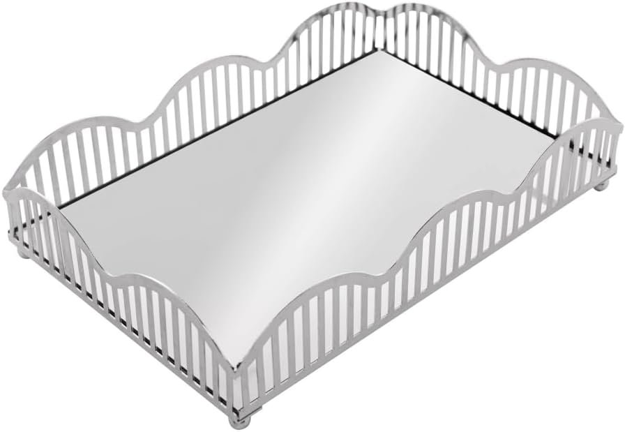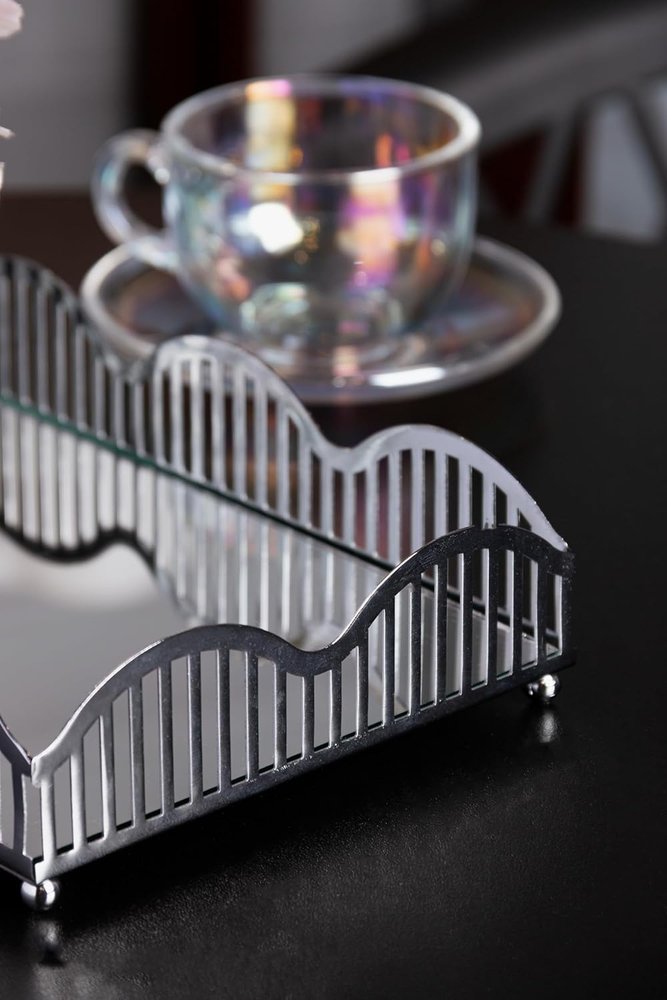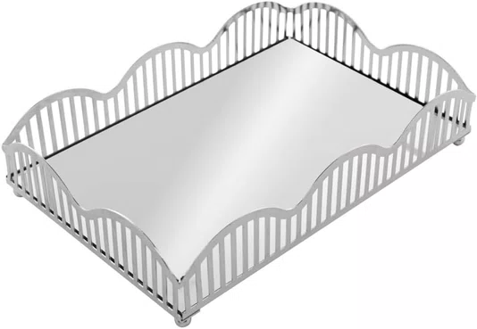 Bandeja com Espelho Wave 21cm X 14cm X 4cm Prateada - Lyor