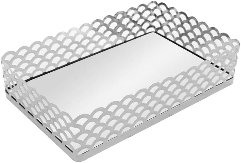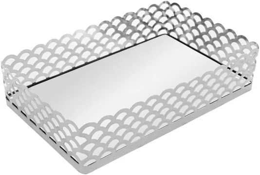 Bandeja de Metal Prata com Espelho Arles 21x14x4cm - Lyor