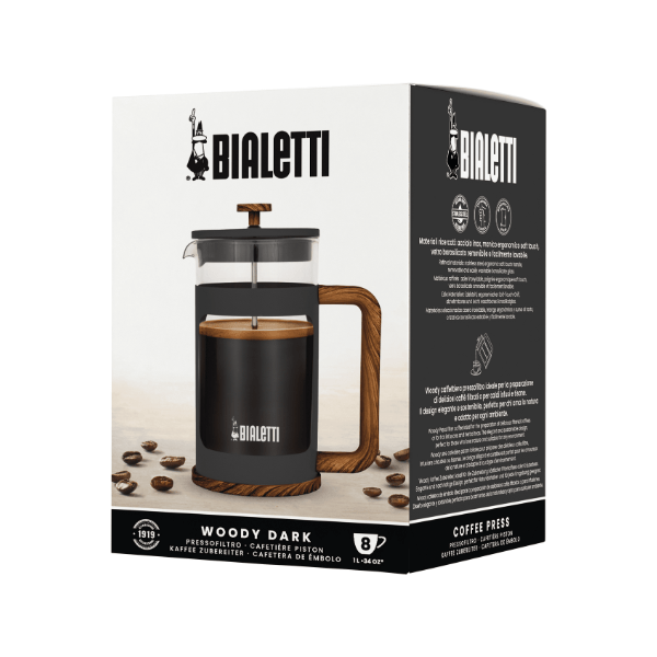 A Bialetti French Press Woody 1l Preta é a escolha perfeita para quem aprecia um café encorpado e valoriza uma estética minimalista e natural na cozinha.