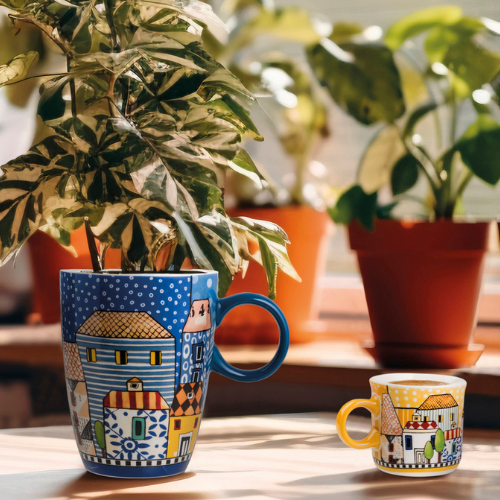 A Caneca Paese Mio da marca italiana Egan celebra a arquitetura e o colorido vibrante das pequenas vilas da Itália. Com um design que evoca as fachadas das casas históricas e vilarejos mediterrâneos, esta peça é confeccionada com o rigor estético europeu para transformar o consumo de café ou chá em um momento de apreciação cultural. O contraste entre suas cores vivas e o formato ergonômico faz dela um item de destaque tanto para o uso cotidiano quanto para a composição de mesas postas com personalidade.