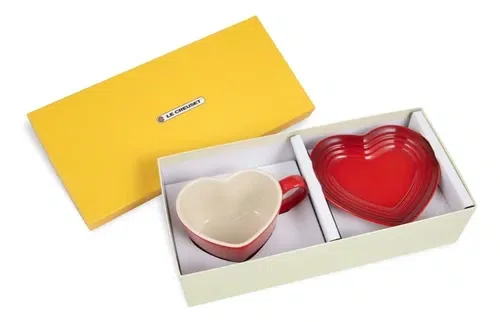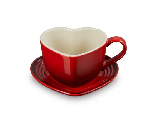 Caneca Coração com Pires 200ml Vermelho Cerise - Le Creuset