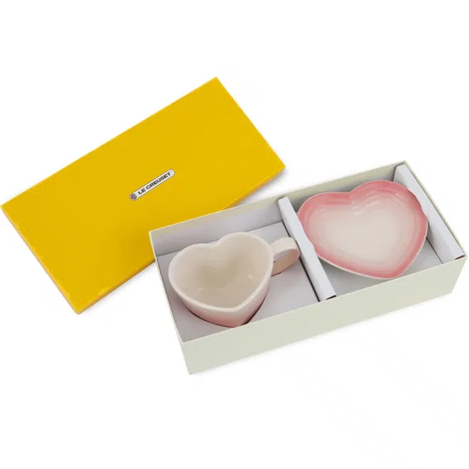 Caneca Coração com Pires 220ml Rosa Shell Pink - Le Creuset