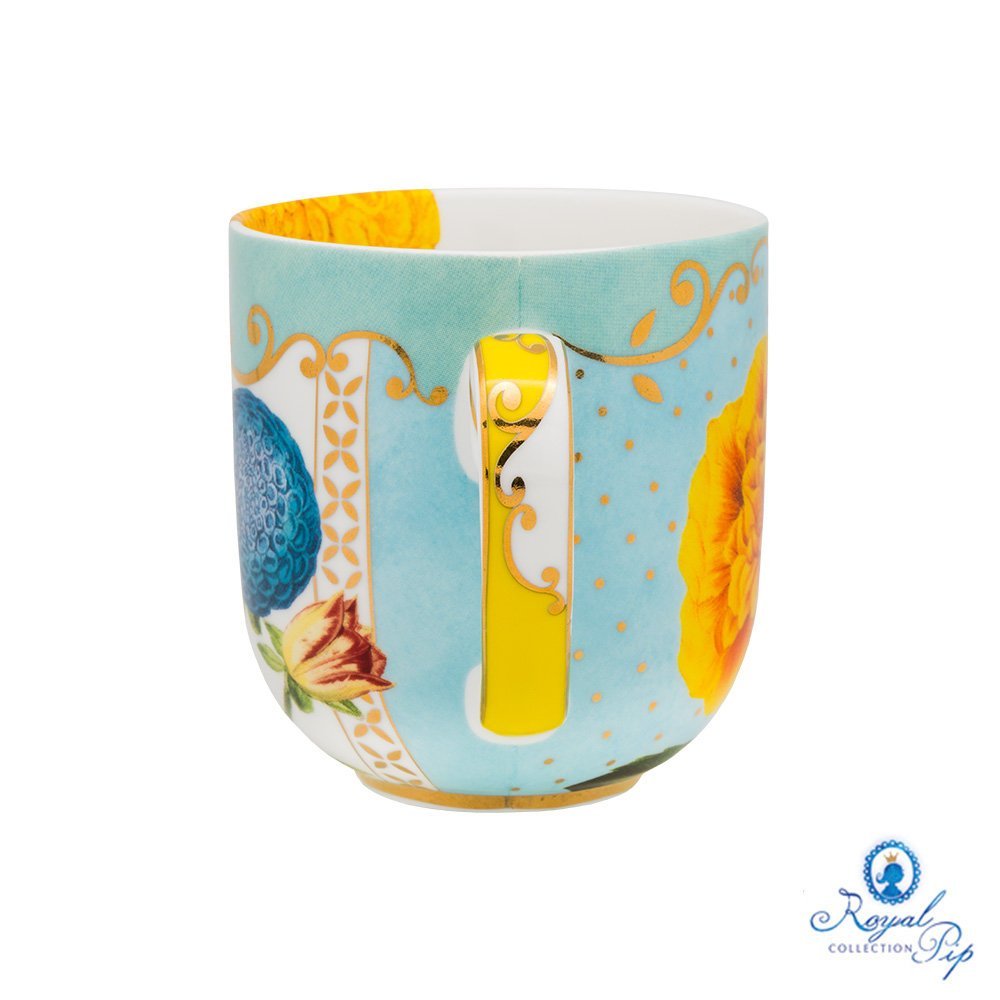 A caneca da coleção Royal tem estampas florais exclusivas com cores vívidas e ricas. O desenho floral continua no interior da caneca e o seu exterior conta com vários toques de ouro.