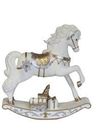O cavalo balanço é adornado nas cores branco e dourado, uma combinação que confere um visual clean e festivo. Um item perfeito para ser colocado em prateleiras, mesas de centro ou como destaque em sua composição de Natal.