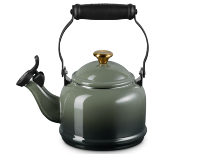 A Chaleira Demi da Le Creuset na cor Thyme, com seu exclusivo pegador dourado, redefine o conceito de elegância funcional na cozinha. Com uma silhueta compacta e graciosa, esta peça apresenta um tom de verde suave e sofisticado, inspirado nas ervas frescas e na natureza, que se harmoniza perfeitamente com o brilho luxuoso de seu acabamento metálico. Desenvolvida para quem valoriza a estética sem abrir mão da eficiência, ela transforma o aquecimento da água em um prelúdio refinado para o seu momento de pausa, oferecendo durabilidade excepcional e uma estética que transita entre o clássico e o contemporâneo.
