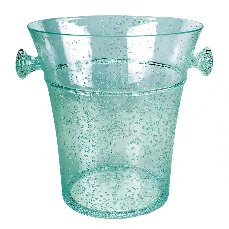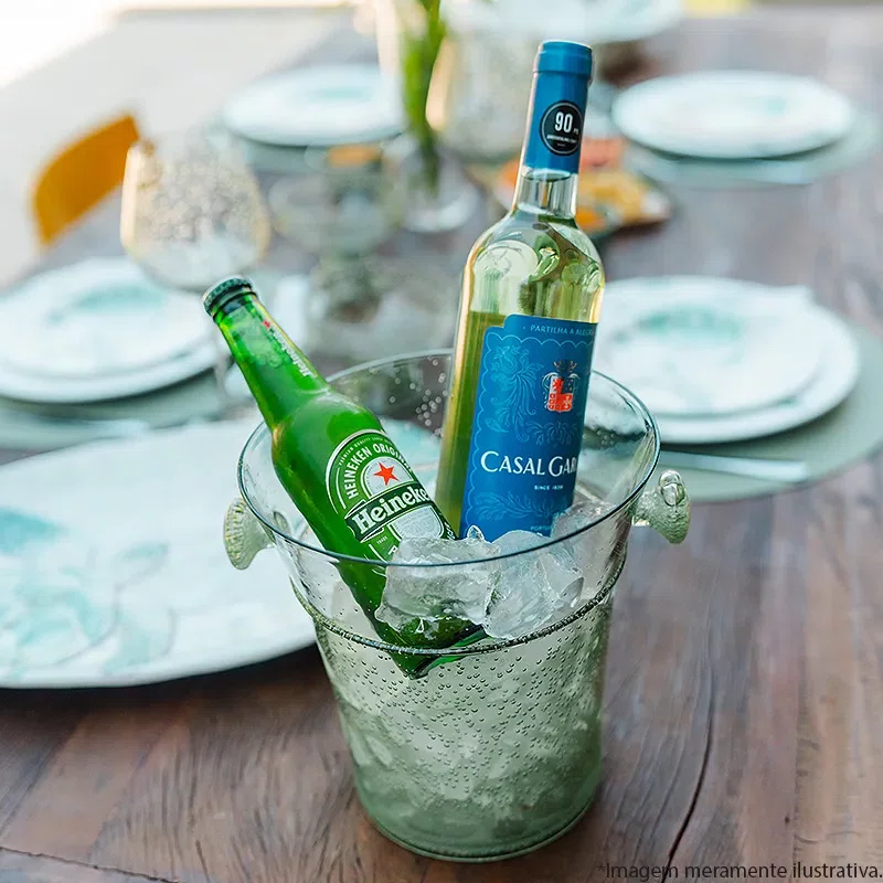 A Champanheira Redonda da Entrecasa é a peça perfeita para quem deseja unir funcionalidade e estética em eventos e recepções. Fabricada em acrílico de alta qualidade na cor verde, ela se destaca pelo seu detalhe exclusivo de "bolhas" injetadas no material, que conferem um visual efervescente e lúdico, remetendo à própria perlage do espumante. Sua transparência colorida permite visualizar o gelo e as garrafas, criando um ponto de destaque vibrante na mesa de bebidas ou no buffet.
