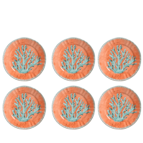 O Conjunto com 6 Pratos Raso Coral Mate Corali da Scalla é perfeito para quem aprecia o charme do acabamento artesanal e as cores vibrantes inspiradas no fundo do mar. Estes pratos de jantar combinam uma estética rústica e sofisticada com alta qualidade.