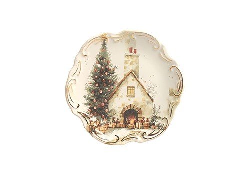 Com um diâmetro de 20,5 cm, o conjunto apresenta uma encantadora estampa natalina que remete a uma "Noite de Neve" idealizada, com elementos clássicos da data: casa, lareira e árvore de Natal. O design festivo e detalhado transforma a sua mesa, tornando cada momento especial.