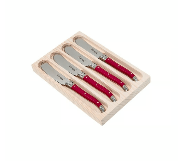 Itens inclusos: 4facas/espátulas e 1 bandeja de madeira.