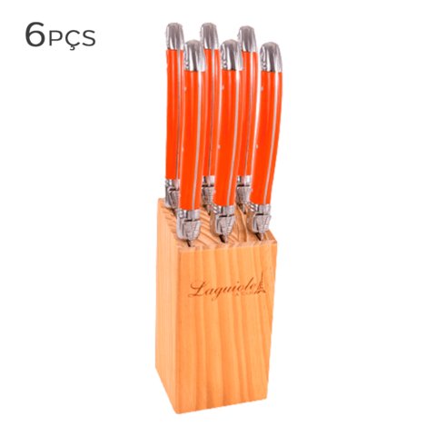 Conjunto de 6 Facas Luxo com Cepo de Madeira Laranja - Laguiole La Tour
