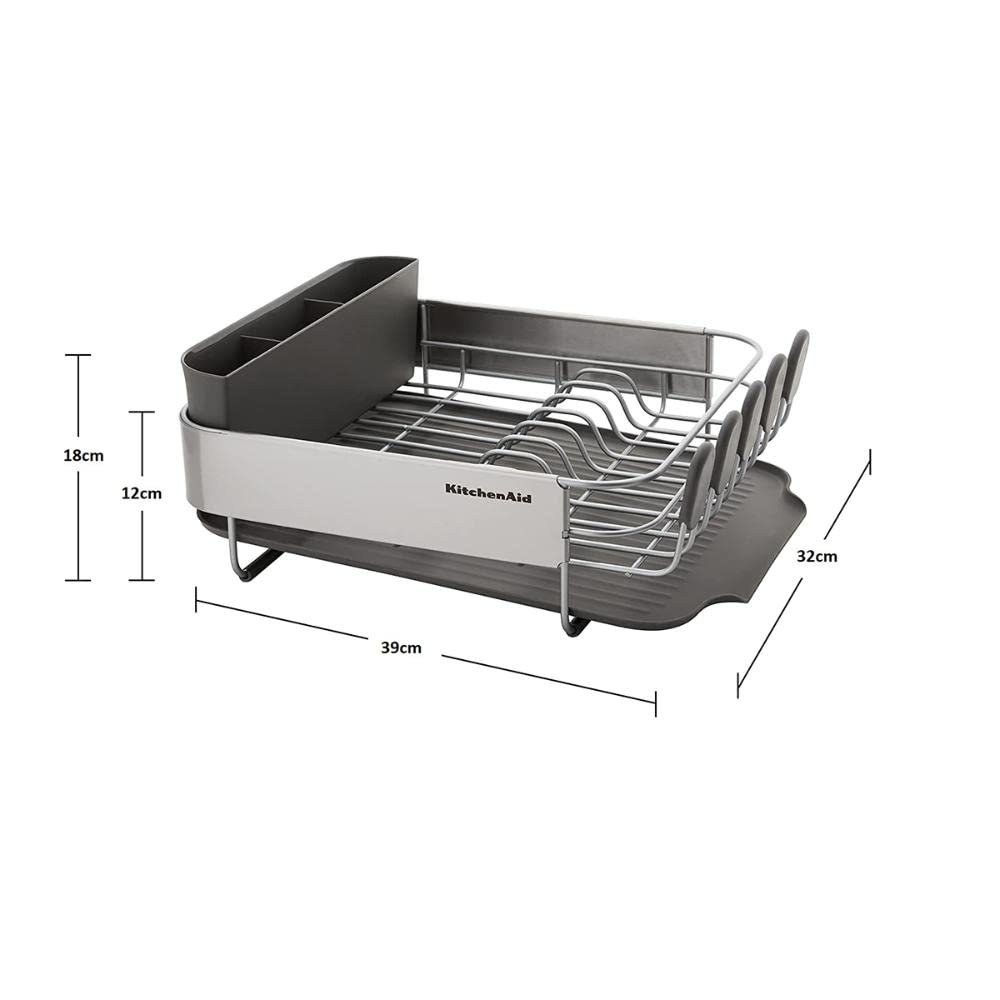 A bandeja presa ao rack inferior é inclinada para permitir que o excesso de água escorra direto para a pia.