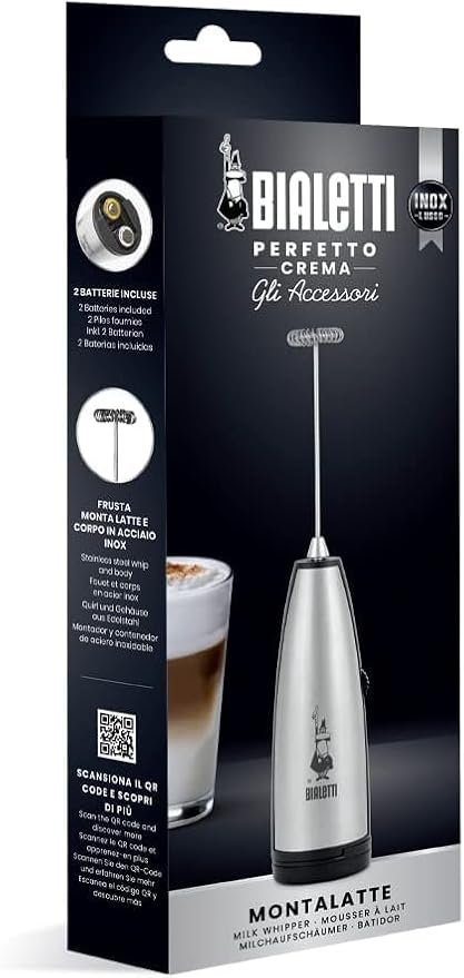 Fabricado em Aço Inoxidável durável e higiênico, este espumador é ideal para criar a espuma perfeita e cremosa para seus cappuccinos, lattes e outras bebidas favoritas. Refletindo a herança italiana da Bialetti – onde a cozinha é o coração da casa –, este utensílio combina tecnologia avançada com estilo distinto, sendo simples de usar e simplesmente bonito.