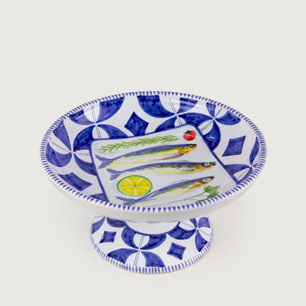 Leve a arte, a tradição e o charme das sardinhas para sua casa. Adquira a Fruteira com Pé da Luiz Salvador e celebre a beleza artesanal!