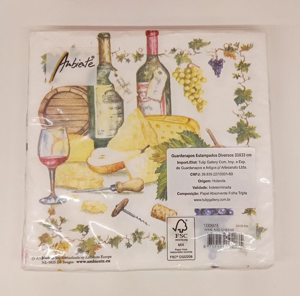 Guardanapo Wine And Cheese Fsc Mix - Ambiente