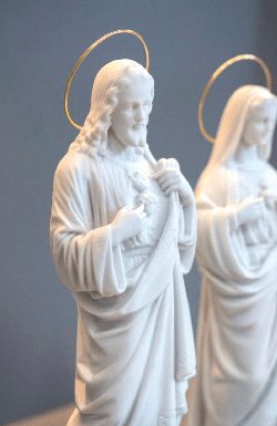 Devoção ao Sagrado: Escultura do Sagrado Coração de Jesus em Pó de Mármore Branco e Acabamento de Prestígio.