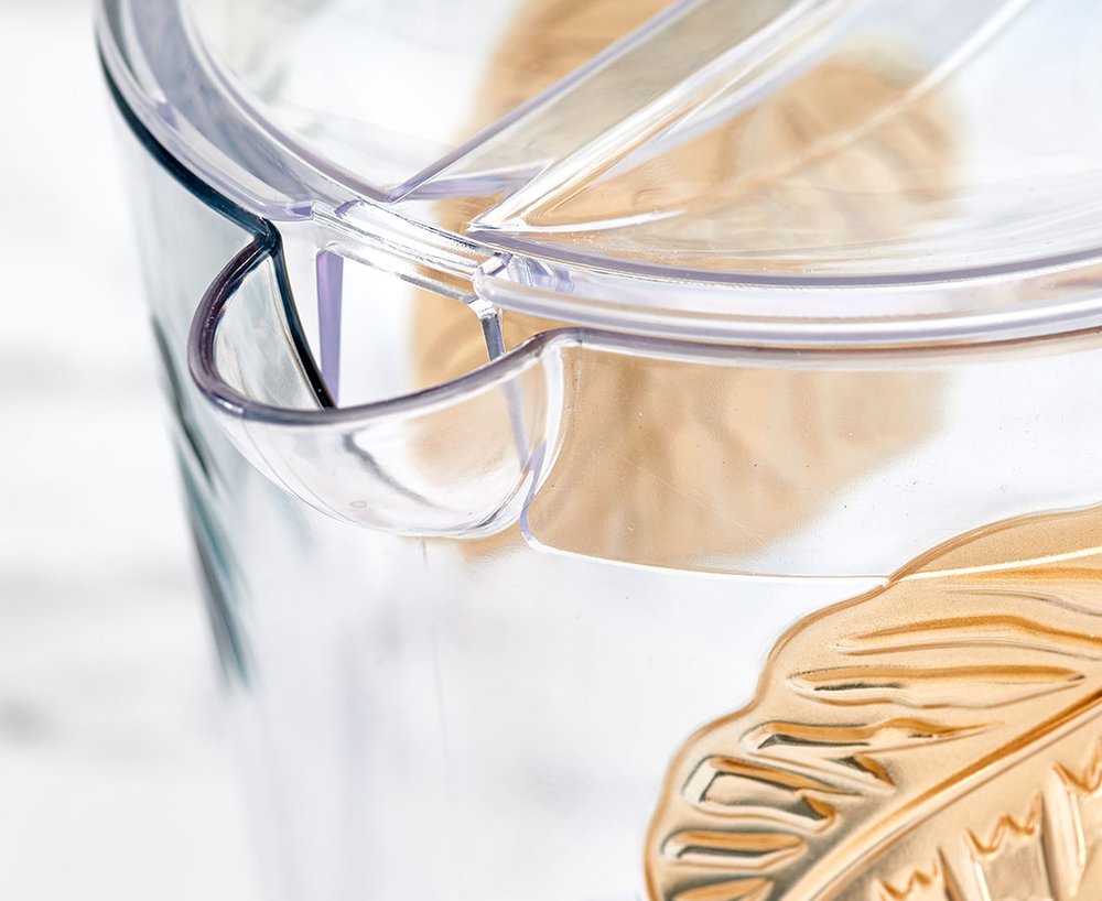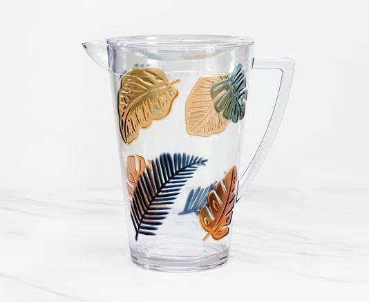 A Jarra de Acrílico com Detalhe de Folhas da Entrecasa é uma verdadeira peça de destaque para quem ama mesas postas com temática tropical ou jardim. Com uma capacidade excepcional de 3,5 litros — uma das maiores disponíveis no mercado —, ela é perfeita para hidratar grandes grupos com elegância. O relevo de folhas esculpido na superfície do acrílico não apenas confere um toque artístico e tátil à peça, mas também cria um belo jogo de luzes quando preenchida com líquidos coloridos ou águas aromatizadas com frutas.