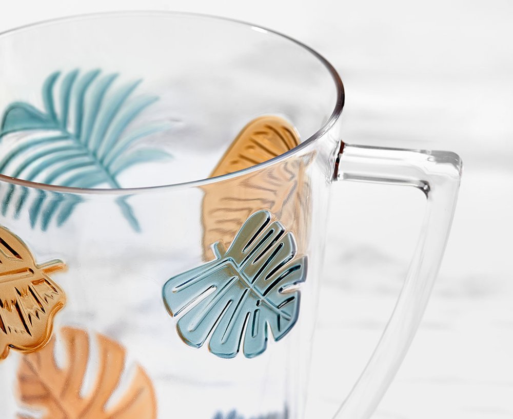 Leve o frescor do design botânico e a praticidade do volume extra para a sua mesa com a jarra de folhas da Entrecasa.