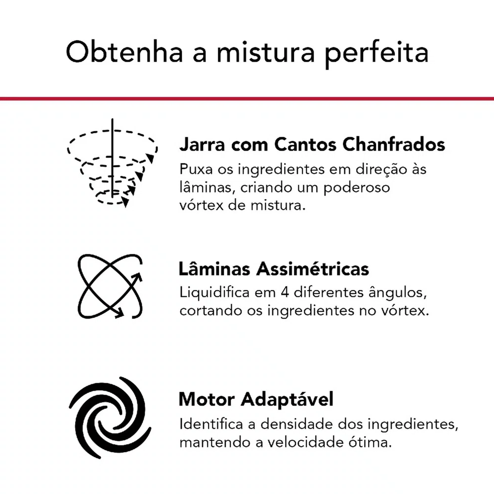 Equipado com o sistema Intelli-Speed, este liquidificador monitora o conteúdo e mantém a velocidade ideal para processar todos os ingredientes de forma constante, independentemente da densidade. As suas 5 velocidades, somadas às funções Pulsar e Triturar Gelo, oferecem um controle total sobre a textura, permitindo desde um picar grosseiro até purês e cremes aveludados.