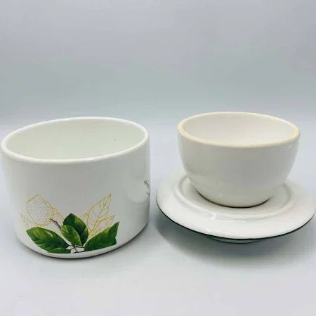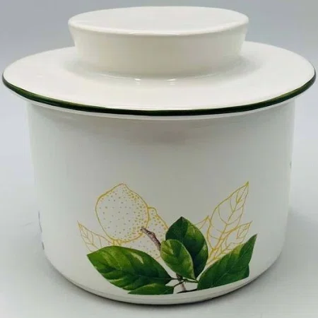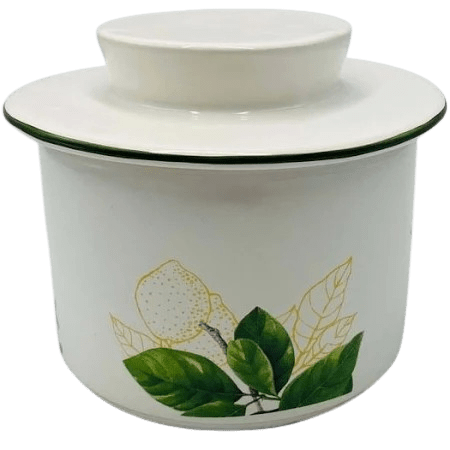 Fabricada em cerâmica de alta qualidade, a manteigueira possui um design charmoso na cor branca e com estampa de folhas e fruta e é realçada por um delicado Filete Verde na borda. É um utensílio indispensável para adicionar um toque de sofisticação e funcionalidade à sua mesa de café da manhã ou brunch.
