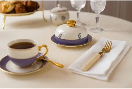 Produzida em cerâmica de alta qualidade, esta manteigueira se destaca pela base na cor Roxa e pela estampa de flor que remete à beleza da flora. Para um acabamento luxuoso e requintado, a peça é adornada com detalhes dourados, conferindo sofisticação.