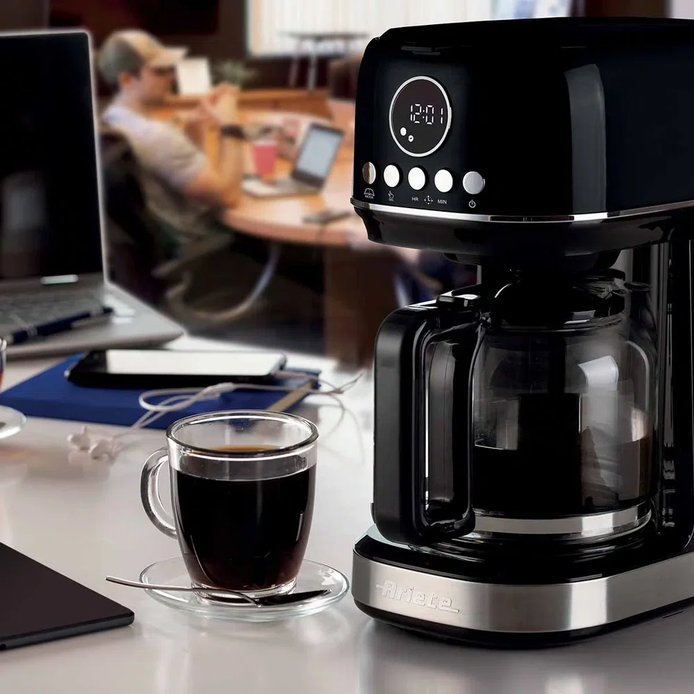 A Cafeteira Programável Moderna da Ariete é a união perfeita de tecnologia, funcionalidade e estilo. Parte da Linha Moderna, ela foi projetada para preparar um delicioso café coado (ou americano) a qualquer hora do dia com conveniência e sofisticação. Sua cor preta e linhas suaves adicionam um toque de elegância e modernidade à sua cozinha.