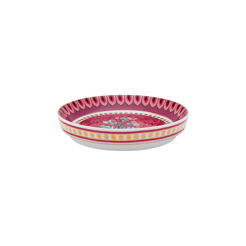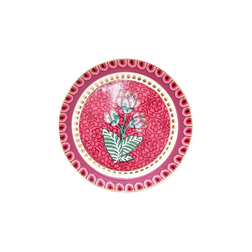 As peças são decoradas com ornamentos florais, inspirados nos arcos indianos de madeira. Em alguns itens as flores são combinadas com a refinada estampa de ondas Seigaiha, que é típica japonesa. Todas as peças são decoradas com detalhes dourados, um verdadeiro tesouro na sua mesa.