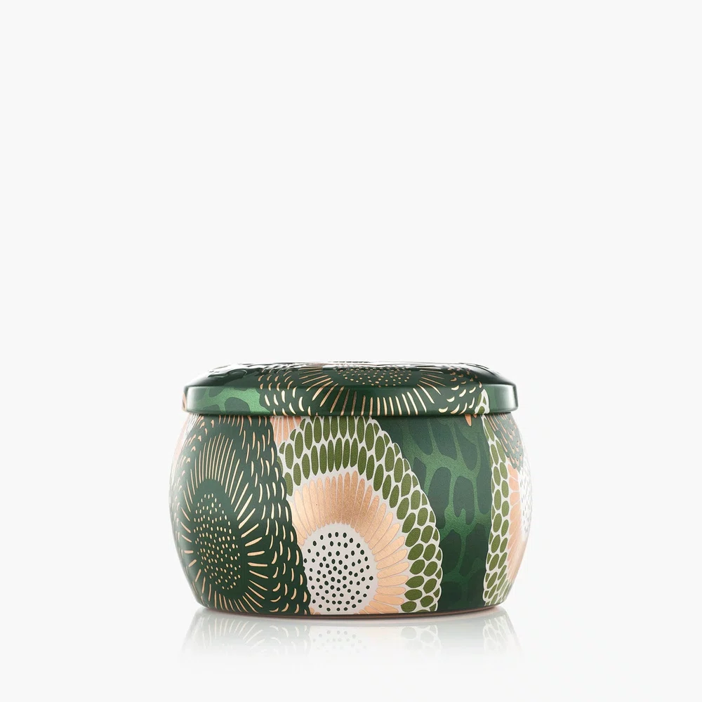 A Mini Vela em Lata Temple Moss da Voluspa é um convite à introspeção e ao relaxamento. Esta fragrância transporta os sentidos para o interior de um templo zen, onde o aroma do musgo verdejante se mistura a notas amadeiradas e um toque de frescor botânico. O design da lata, com relevos detalhados e padrões inspirados na arte japonesa da coleção Japonica, torna-a um objeto de decoração versátil e sofisticado. Ideal para lavabos, mesas de cabeceira ou para levar em viagens, esta mini vela oferece uma queima limpa e uma perfumação envolvente, transformando instantaneamente a atmosfera de qualquer pequeno espaço.