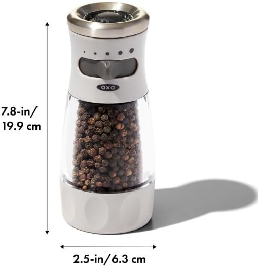 Palavras-chave: Moedor de pimenta Oxo, Moedor manual ajustável, Moedor acrílico, Oxo Good Grips, Moedor de pimenta inox, Utensílios de mesa.