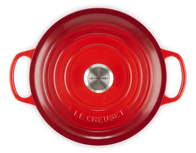A Panela Redonda Signature da Le Creuset é o padrão ouro para cozinheiros domésticos e chefs profissionais. Combinando o design clássico francês com a eficiência moderna, esta peça é fabricada em ferro fundido de alta qualidade, garantindo uma distribuição de calor uniforme e retenção térmica superior. O acabamento esmaltado na icônica cor Vermelho Cerise não apenas embeleza a cozinha, mas também oferece uma superfície resistente a manchas e fácil de higienizar.