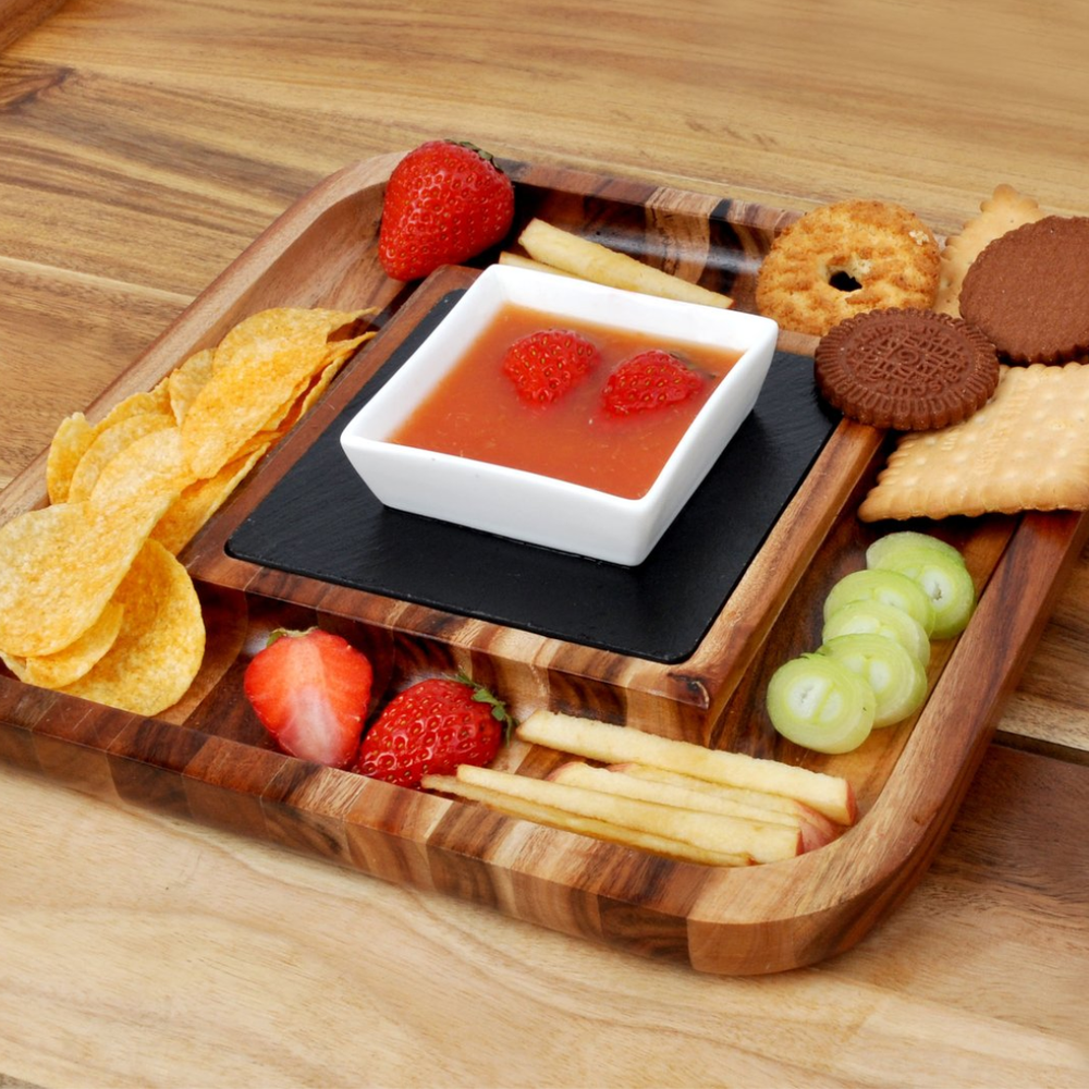 Sirva petiscos com muito mais charme e elegância com a Petisqueira Madeira com Pedra.