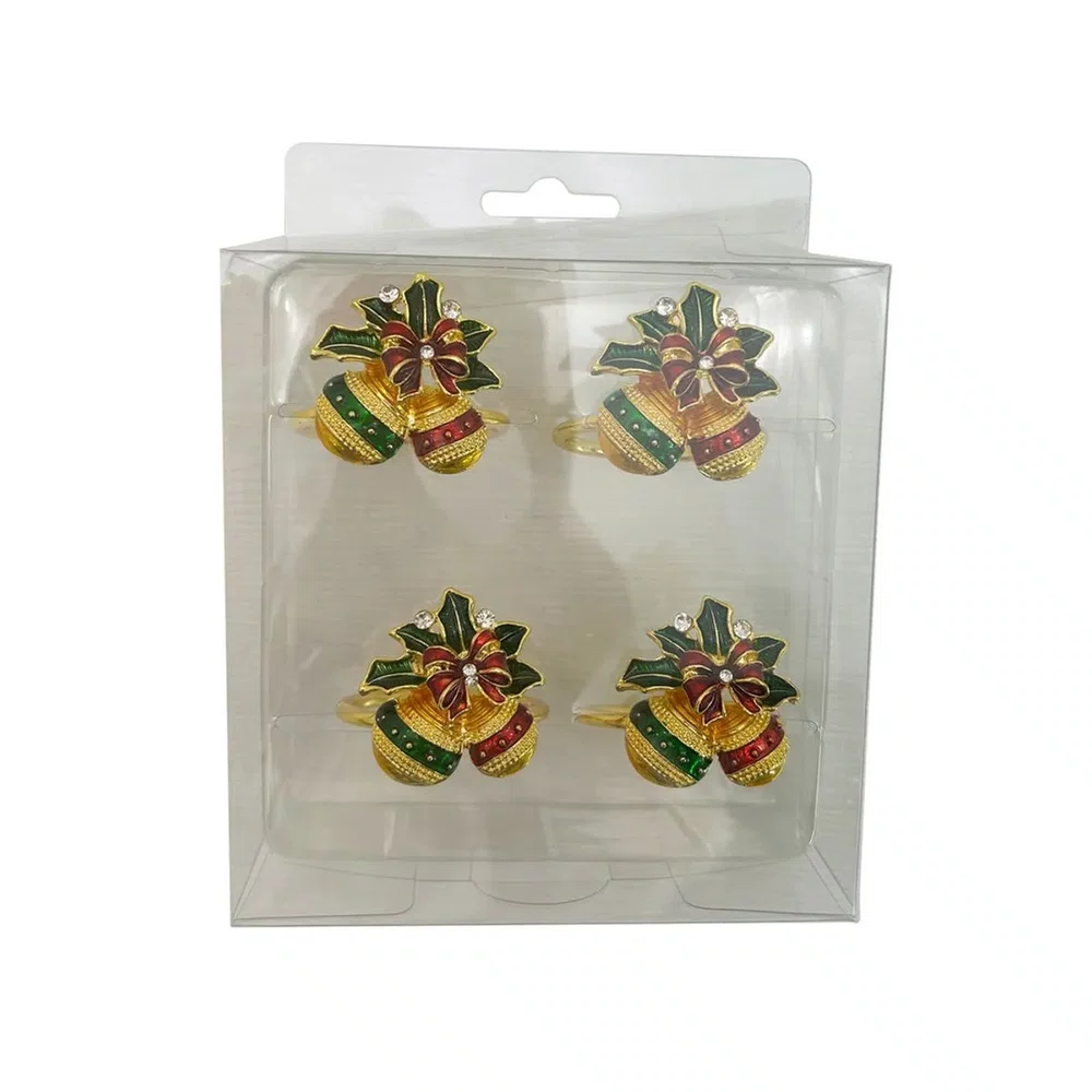 Porta Guardanapos Sinos em Metal Dourado 4 peças - Btc