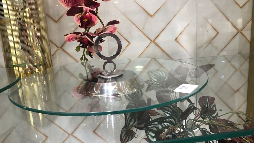 Prato Petit Four em Inox e Vidro Giratório Venezia Riva - 37cm