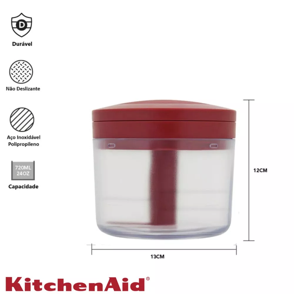 Com apenas alguns puxões você ativa o acionamento, que gira as lâminas de corte para picar ingredientes perfeitamente, em segundos.