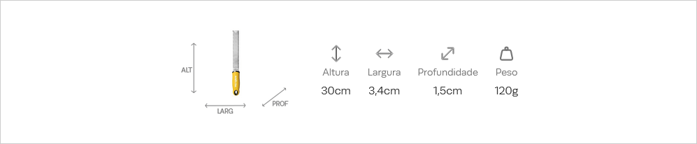 O Ralador Zester da Microplane é uma ferramenta queridinha, versátil e prática para ralar alimentos secos ou úmidos, como frutas cítricas, queijos duros, gengibre, alho, noz moscada e canela.