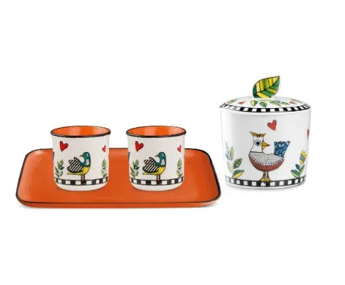 A Egan é mestre em criar coleções que geram conexões emocionais. A linha Cocorico celebra a vida no campo e a tradição camponesa italiana com um olhar cosmopolita. O uso do amarelo não é por acaso: é a cor do otimismo e da energia, pensada estrategicamente para tornar o seu primeiro café do dia um momento mais leve e inspirador. É o presente perfeito para quem aprecia o "slow coffee" com uma pitada de arte e diversão.