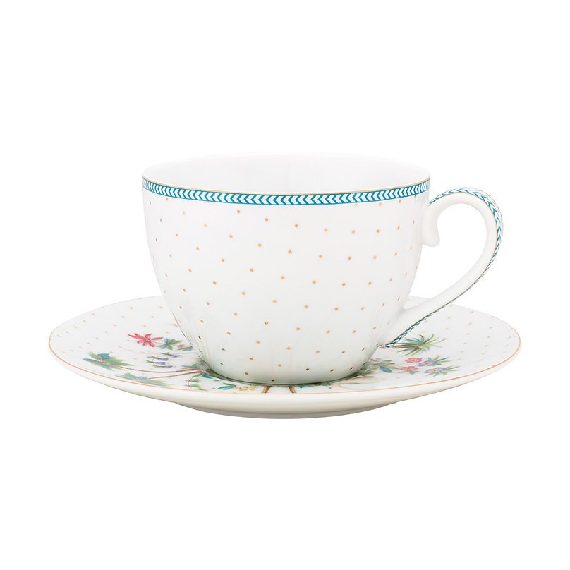 A xícara de chá da Jolie tem capacidade de 280ml, aproximadamente 7cm de altura, 16cm de diâmetro e é feita com a mais delicada porcelana. A caixa tem aproximadamente 12x17x17cm.