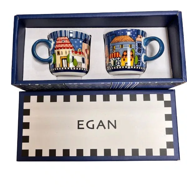 O conjunto de xícaras para espresso da linha Paese Mio, da renomada marca italiana Egan, é uma ode às raízes e paisagens da Itália. Com capacidade de 90ml, estas xícaras são perfeitamente dimensionadas para um café espresso encorpado. A coleção destaca-se pelas suas ilustrações lúdicas e detalhadas de vilarejos italianos em um tom azul profundo sobre porcelana branca, evocando a tranquilidade e a beleza das cidades históricas da Itália. É o presente ideal para amantes do café que valorizam o design europeu e a tradição artesanal.