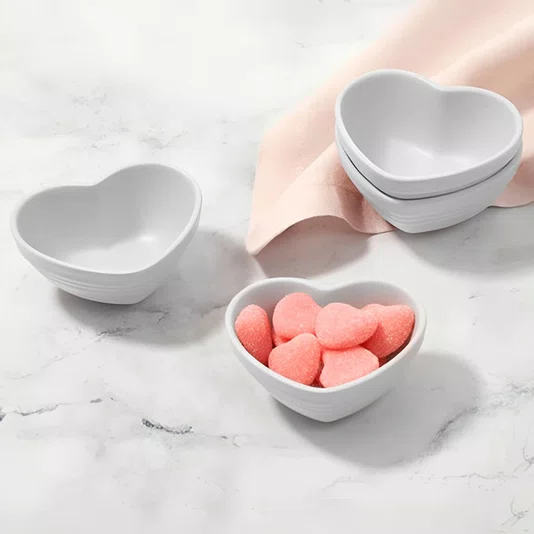 Este conjunto de mini bowls em formato de coração é perfeito para quem busca unir romantismo e praticidade na cozinha. Fabricados em cerâmica premium, eles apresentam um acabamento esmaltado na cor White (Branco), que oferece uma estética limpa, atemporal e extremamente fácil de combinar com qualquer aparelho de jantar. São ideais para servir geleias, molhos, petiscos ou pequenas porções individuais, garantindo uma apresentação impecável tanto em cafés da manhã quanto em jantares especiais.