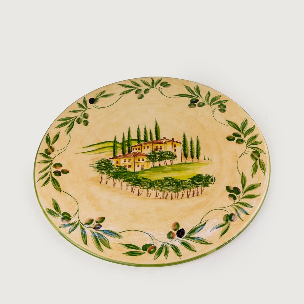 A Tábua de Queijos Oliveiras da Luiz Salvador é uma peça sofisticada e encantadora, perfeita para quem deseja servir com charme e criar composições de mesa afetivas. Produzida em cerâmica de alta qualidade e inteiramente pintada à mão, esta tábua traz em sua superfície uma belíssima cena campestre cercada por ramos de oliveiras, remetendo ao elegante estilo de vida mediterrâneo.