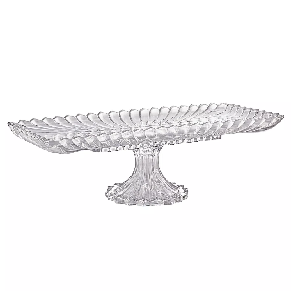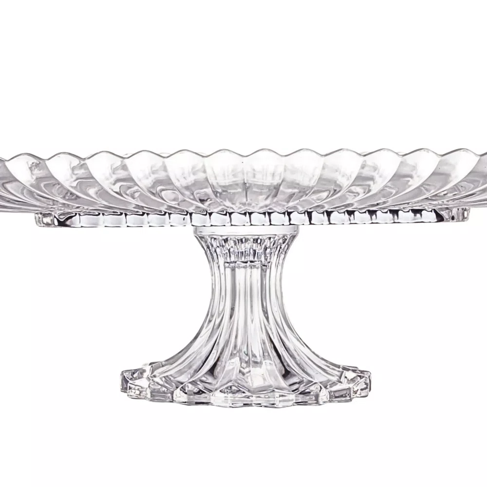 Com suas linhas limpas e acabamento em cristal de alta qualidade, esta travessa é durável, resistente e mantém seu brilho e elegância ao longo do tempo. O diferencial está no pé, que eleva a peça, adicionando uma dimensão de sofisticação, destaque e garantindo estabilidade para um serviço fácil e seguro. É ideal para realçar a beleza de pratos especiais, entradas ou sobremesas. Também pode ser utilizado como centro de mesa com flores e diversos enfeites.