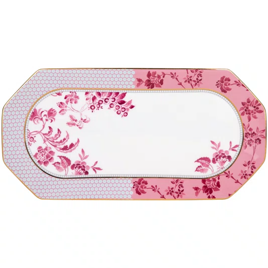 A Travessa Hexagonal Regency Damask Pink Floral da Tea Delight é a personificação da sofisticação para quem busca fugir do óbvio sem perder a elegância clássica. Com sua silhueta geométrica de seis lados, esta peça oferece uma estética arquitetônica que se destaca em qualquer composição de mesa posta. A estampa floral em tom rosa suave, integrada à icônica padronagem damasco, flutua sobre a brancura impecável da porcelana Bone China. Ideal para servir antepastos, petit fours ou acompanhamentos selecionados, esta travessa combina a leveza e a translucidez da porcelana nobre com a resistência necessária para os momentos mais memoráveis.