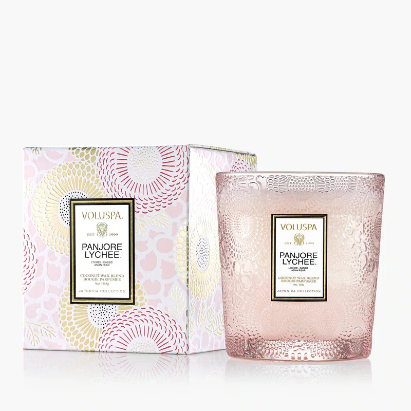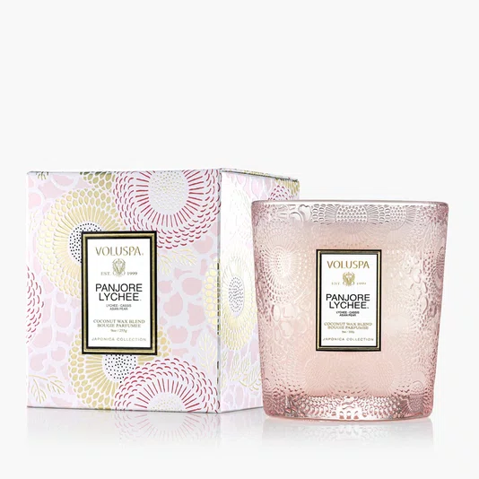 A Vela Panjore Lychee em seu formato de copo de vidro clássico é uma peça de arte olfativa que ilumina o ambiente com vivacidade e frescor. Inspirada em uma colheita suculenta de um jardim tropical, esta fragrância é a "nata da colheita" da Voluspa, equilibrando a doçura da lichia com notas nítidas de cassis e pera asiática. O recipiente de vidro, adornado com os padrões icônicos da coleção Japonica, cria um jogo de luz hipnotizante enquanto a chama dança, transformando o ato de acender uma vela em um momento de puro luxo e revitalização para a alma.