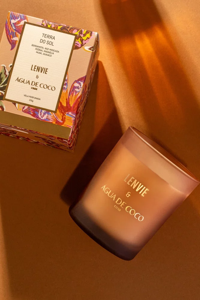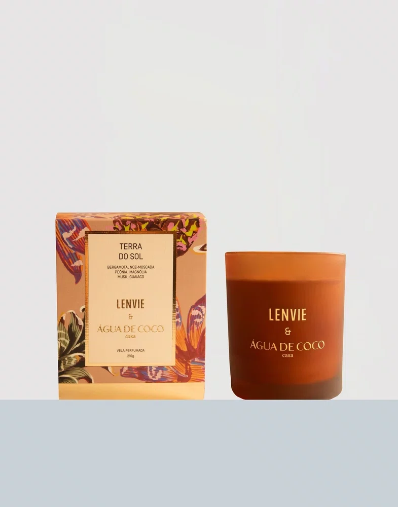 A Vela Perfumada Terra do Sol 210g é o resultado de uma parceria exclusiva com a marca Água de Coco, que captura e traduz o autêntico estilo de vida brasileiro. Esta vela foi criada para levar a energia e a luz do verão para dentro de casa durante todo o ano.