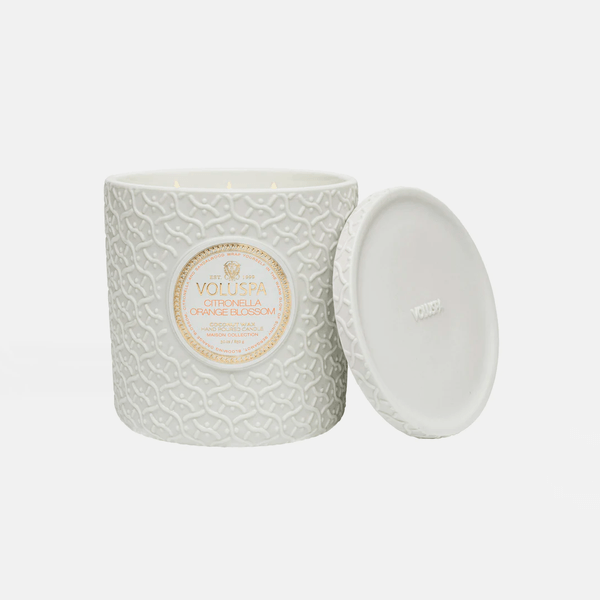 Relaxe ao ar livre enquanto curte os momentos finais do pôr do sol. Acomode-se em uma noite amena de verão na companhia perfumada de Citronella Orange Blossom. Envolva-se no brilho quente da bergamota ensolarada, flor de laranjeira e citronela, complementadas por notas de base de sândalo. Perfeita para ambientes externos.