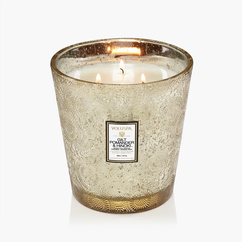 Vela Vaso Pedestal 3 Pavios +80h Gilt Pomander e Hinoki - Voluspa