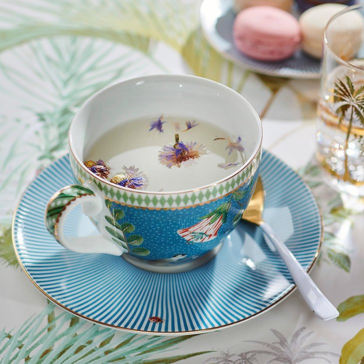 A xícara de chá da La Majorelle tem capacidade de 280ml, aproximadamente 7cm de altura, 16cm de diâmetro e é feita com a mais delicada porcelana.